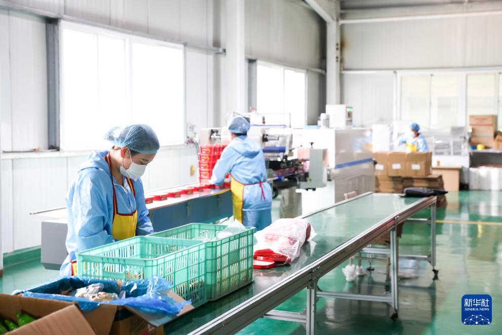 7月22日,在天水市秦州區(qū)一家農(nóng)業(yè)企業(yè),工人在麻辣燙方便食品生產(chǎn)線上作業(yè)。新華社記者 范培珅 攝