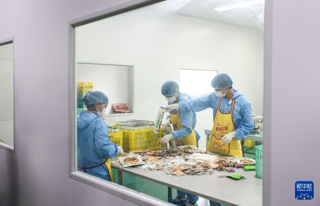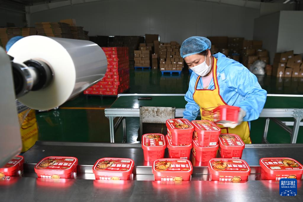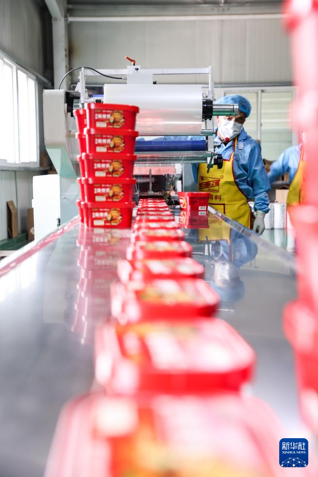 7月22日,工作人員在甘肅天水市一家麻辣燙企業(yè)車間內(nèi)包裝產(chǎn)品。新華社記者 呂帥 攝