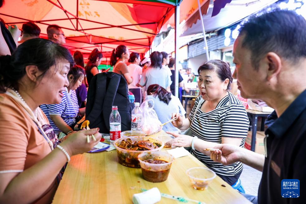 7月22日,顧客在甘肅天水市名優(yōu)小吃城品嘗麻辣燙。新華社記者 呂帥 攝