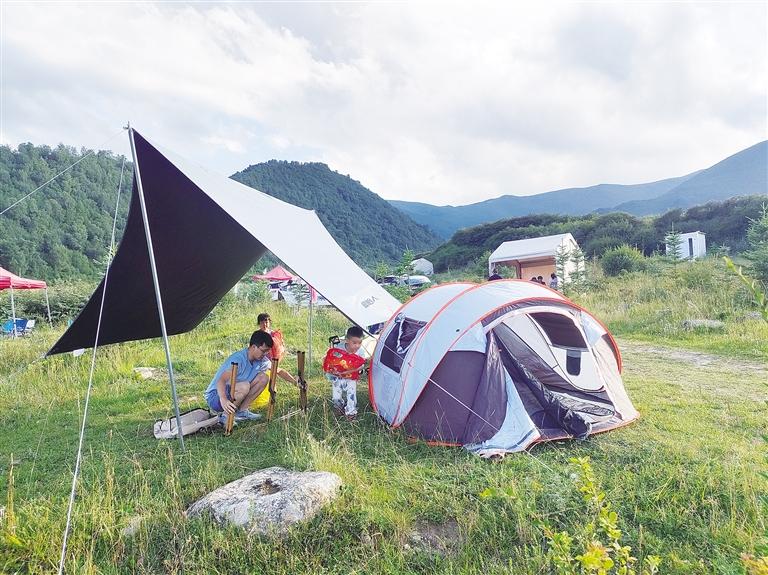 在整個(gè)懸帽咀山谷,到處是車輛和帳篷,一家挨著一家,很多人在小溪邊拍照玩耍,勾勒出一幅美麗的畫卷。