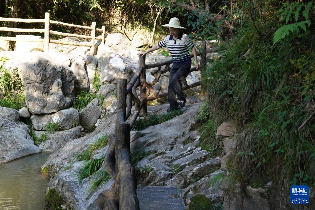 7月14日,游客在青泥嶺古蜀道遺存旁走過。新華社記者 馬寧 攝