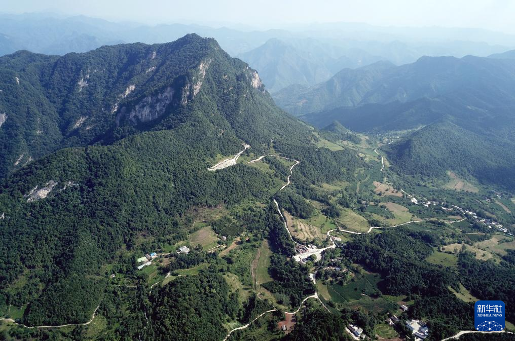 7月14日拍攝的青泥嶺上的村莊和鄉(xiāng)村道路(無人機(jī)照片)。新華社記者 馬寧 攝