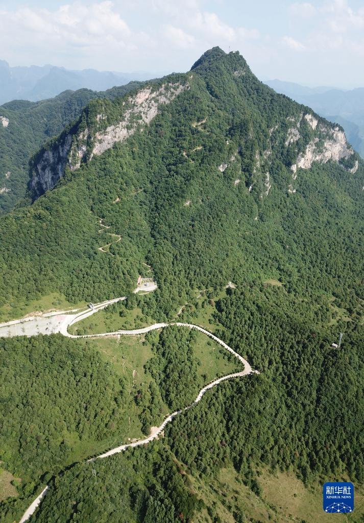 7月14日拍攝的青泥嶺主峰鐵山和鄉(xiāng)村道路(無人機(jī)照片)。新華社記者 馬寧 攝