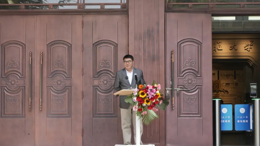開幕式最后,徐兆壽致答謝詞。他說,做這次展覽的初衷,是因為在這個數(shù)字、AI和音視頻的傳播時代,書寫可以體悟中國文化的心法。他自三十六歲起開始與孔子、老子、鳩摩羅什等圣賢結(jié)緣,五十歲以后又遇見了伏羲、大禹,正是如此多的先賢讓他有了弘道的愿望。同時特別感謝樓宇烈、莫言、賈平凹、連輯、李敬澤等眾多文化名家的支持,共同呼吁大學(xué)生抄寫經(jīng)典,傳承中華文脈。最后,他呼吁更多的人拿起毛筆或鋼筆,重新書寫,傳承經(jīng)典,弘揚傳統(tǒng)文化。