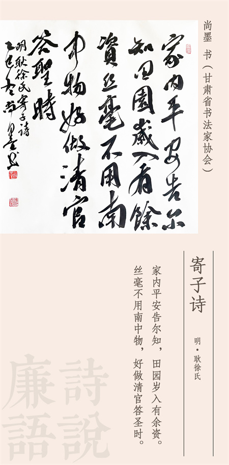 詩(shī)史長(zhǎng)將賢母?jìng)?,一言誡子守清廉。