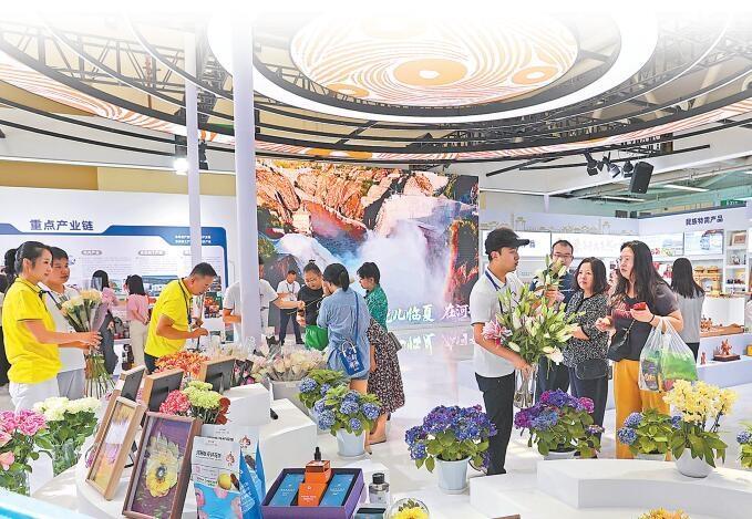 臨夏館鮮切花吸引眾多參觀者購(gòu)買(mǎi)。
