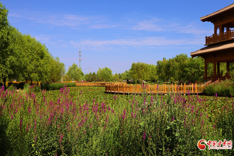 7月8日,雨后的臨澤小城初晴,天空湛藍。棗鄉(xiāng)風情園的睡蓮池畔,成為市民和游客的熱門去處。古亭倒影在平靜的池水中,與盛開的睡蓮相映成趣。市民游客坐在池邊長椅上閑聊,鍛煉的人們也沉浸在這愜意的氛圍中。