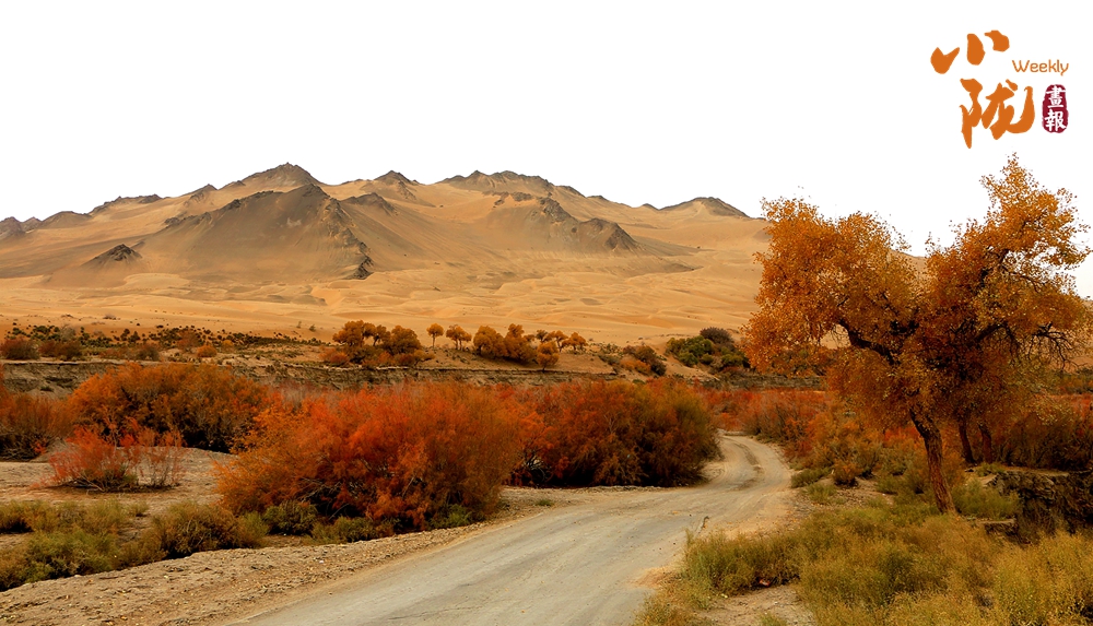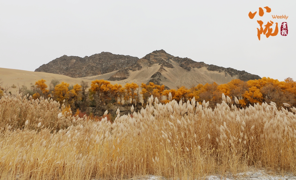 連綿起伏的沙丘如金色浪潮,環(huán)抱著一汪碧水,藍(lán)天白云倒映其中。金黃的胡楊在秋風(fēng)中輕輕搖曳,宛如一群身著華麗服飾的衛(wèi)士,默默守護(hù)著這片沙漠中的綠洲。