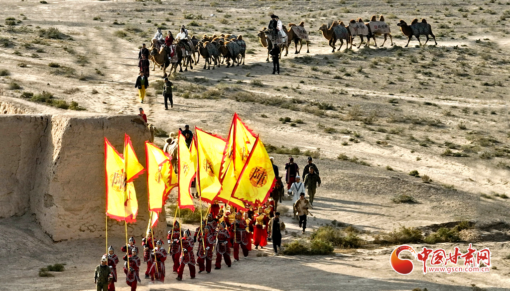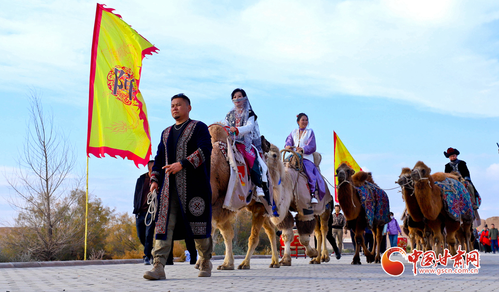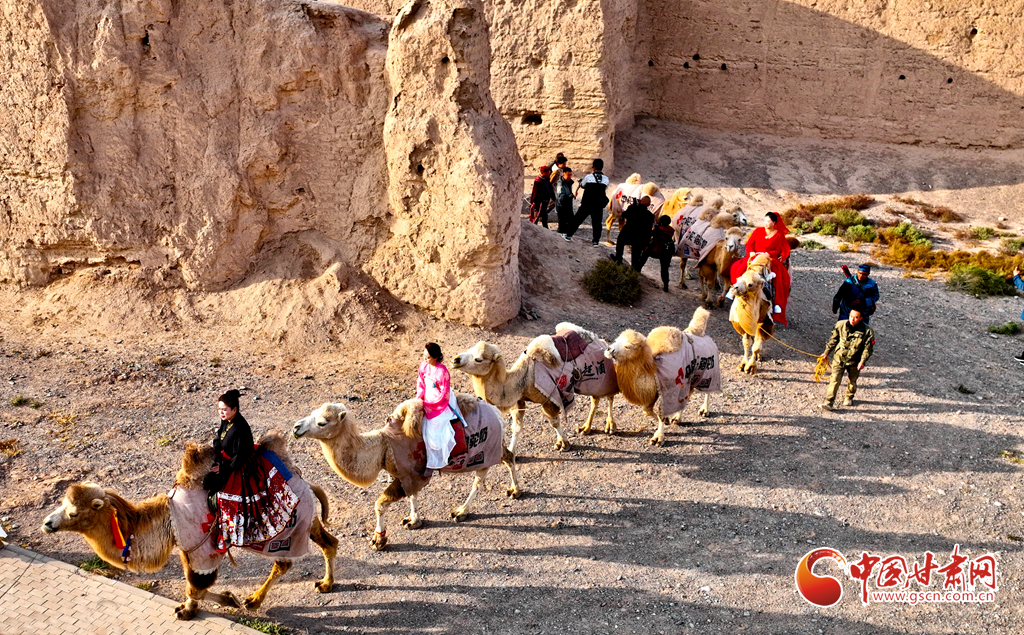 10月9日,一隊由33峰駱駝組成的駝隊行進(jìn)在高臺縣境內(nèi)的絲綢之路大型漢唐古文化遺址——駱駝城遺址內(nèi),千年駱駝城又響起陣陣駝鈴聲。