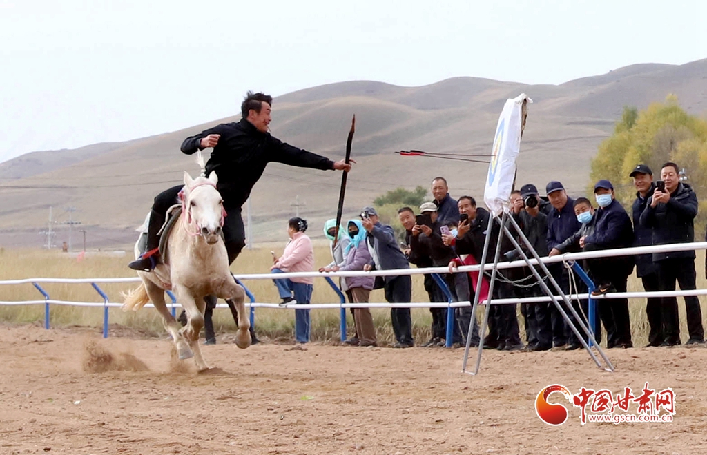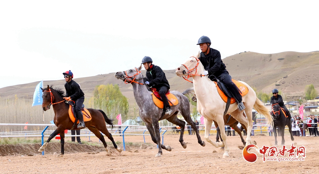 10月14日,山丹縣的一場賽馬會上,騎手們正策馬揚(yáng)鞭,為游客展示多項(xiàng)馬術(shù)項(xiàng)目。山丹縣毗鄰祁連山自然保護(hù)區(qū)和山丹軍馬場,坐擁優(yōu)質(zhì)草場資源,養(yǎng)馬歷史逾兩千年,馬文化底蘊(yùn)深厚,產(chǎn)業(yè)基礎(chǔ)扎實(shí)。近年來,當(dāng)?shù)貒@馬文化主題,建設(shè)了賽馬場、觀光馬道、育馬基地等設(shè)施,致力于為游客與馬術(shù)愛好者打造一個獨(dú)具特色的馬文化體驗(yàn)地。