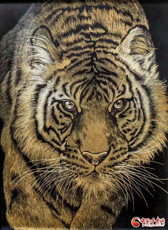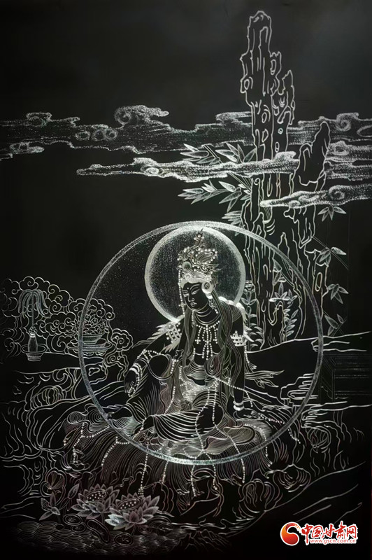 對張兆武來說,做鍥金畫從來不是“照貓畫虎”。他琢磨傳統(tǒng)書畫的筆墨、篆刻的力道,慢慢攢出了自己的一套刀法;創(chuàng)作時(shí),心里裝的也全是敦煌——從莫高窟第112窟里“反彈琵琶”的靈動舞姿,到傳說中“九色神鹿”的溫潤模樣,都成了他刻刀下的主角。他刻出的飛天,飄帶像帶著風(fēng);刻出的菩薩,眉眼間透著莊重;金屬的光澤在畫面上流轉(zhuǎn),明明是靜態(tài)的畫,卻像在講一段活的敦煌故事。“不用多說什么,看過的人能懂這份美。”張兆武說的這份“懂”,恰恰打破了文化和語言的距離,讓東方的古老美學(xué),和全世界的現(xiàn)代審美碰出了共鳴。