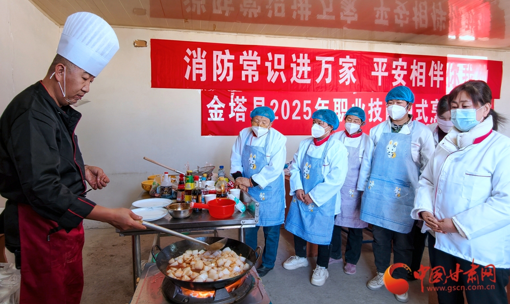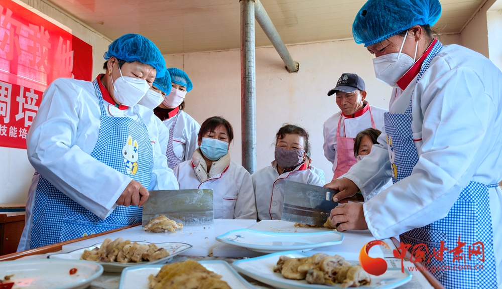 11月4日,金塔縣古城鄉(xiāng)頭號村,村民在培訓老師指導下正在學習廚藝。