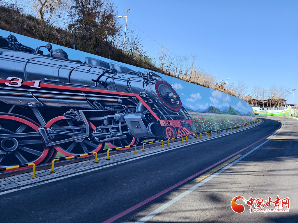 初冬蘭州蘭山,涼意漸濃,“煙雨蘭山”鄉(xiāng)村振興示范帶的童話彩繪卻讓這里成了市民的“造夢秘境”。低成本的藝術改造點亮墻面,連“0931號”蒸汽火車手繪也在此煥發(fā)光彩——車頭暖光里,Q版蘭州瓜果、土撥鼠串聯(lián)成列,宛如“童話專列”載著鄉(xiāng)愁與特產(chǎn)故事,邀人走進山間童話。
