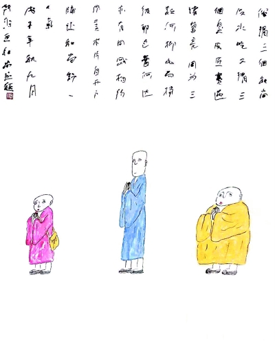 韓羽為動畫片《三個和尚》設(shè)計的人物造型