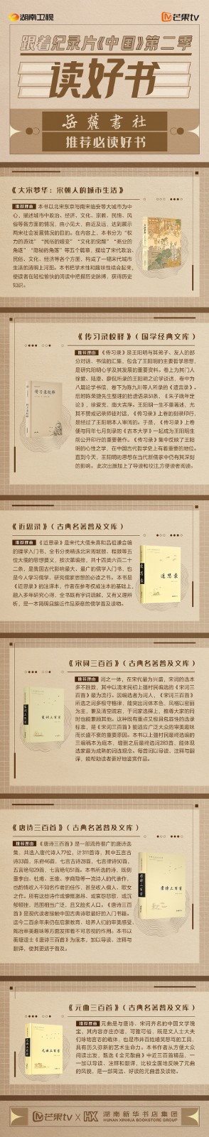 與此同時(shí),紀(jì)錄片《中國》第二季也在湖南新華書店的全省各門店覆蓋宣傳,書友可以通過新華書店,遇見“中國高水平出版物,遇見美好中國”。