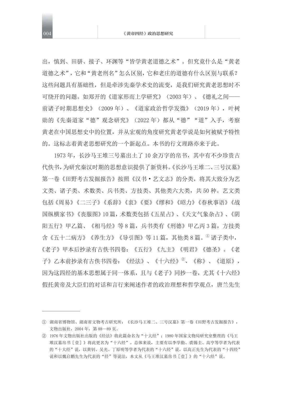 《黃帝四經(jīng)》作為東周之前各朝修身治國(guó)的指導(dǎo)性經(jīng)典,其修身治世功用迄今依然具有極高的現(xiàn)實(shí)意義和指導(dǎo)價(jià)值。本書以《黃帝四經(jīng)》為研究起點(diǎn),重點(diǎn)探索黃老政治思想中的重要概念,并試圖從核心詞匯“道”“德”概念的演變及其相互作用來探究黃老學(xué)說的起源發(fā)展的學(xué)術(shù)邏輯,尤其從“德”含義的拓展與遷移去分析黃老哲學(xué)政治德性的建立,隨之引出黃老政治思想中的重要概念“道法”“刑名”“刑德”“因循”等,并希望由此描摹出黃老政治思想的特性。