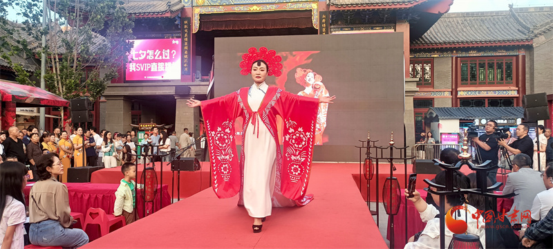 街舞《愛的節(jié)拍》則將現(xiàn)代元素與七夕的浪漫相結(jié)合,活力四射的舞蹈點燃了現(xiàn)場氣氛。沉浸式旗袍大秀中,模特們身著典雅旗袍,邁著優(yōu)雅步伐,展示了東方女性的柔美與魅力,贏得陣陣掌聲。鼓子表演《蘭州眉戶賣水》更是讓觀眾領(lǐng)略到了地方特色文化的魅力,其獨特的唱腔和韻味令人陶醉。