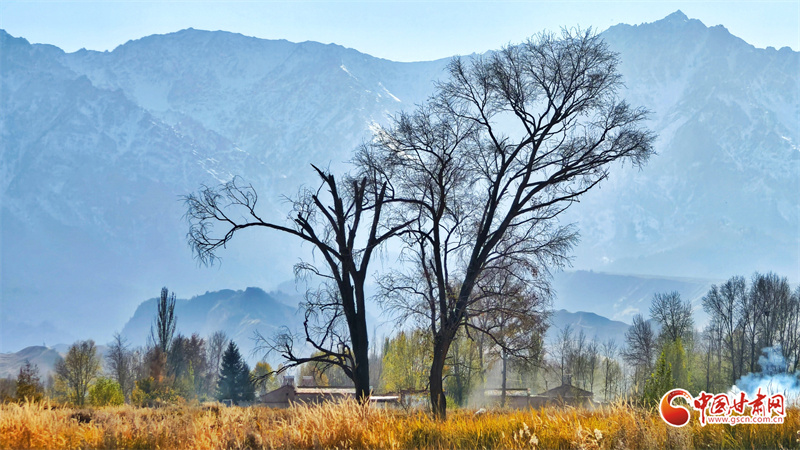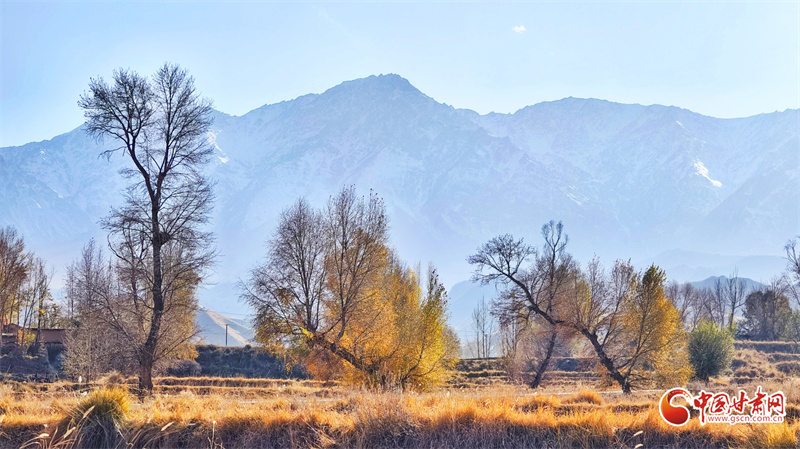 初冬時(shí)節(jié),張掖市民樂(lè)縣南古鎮(zhèn)柳谷村景色宜人。巍峨的祁連山脈連綿起伏,山腳下,萬(wàn)畝良田阡陌縱橫,黃綠相間的樹木點(diǎn)綴其間,為大地暈染出豐富的色彩層次,盡顯祁連山下冬日的獨(dú)特韻味。